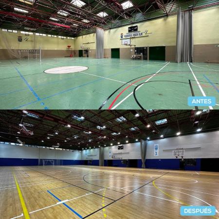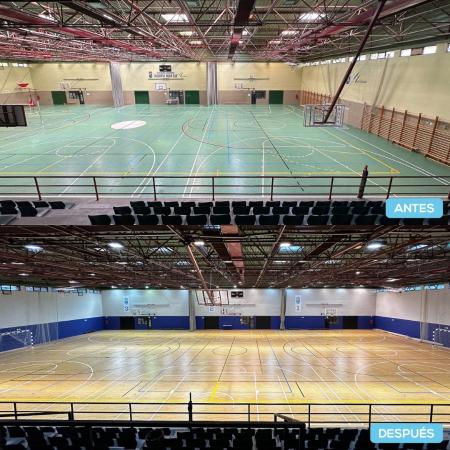 • Se ha sustituido el suelo técnico, los tableros de baloncesto, las luminarias y la señalética