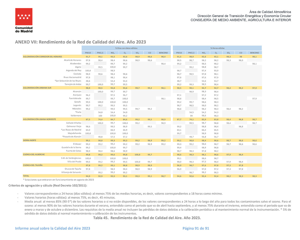 La Comunidad de Madrid publica anualmente un informe resumen de los valores límite, umbrales y objetivos para garantizar la Calidad del Aire.
